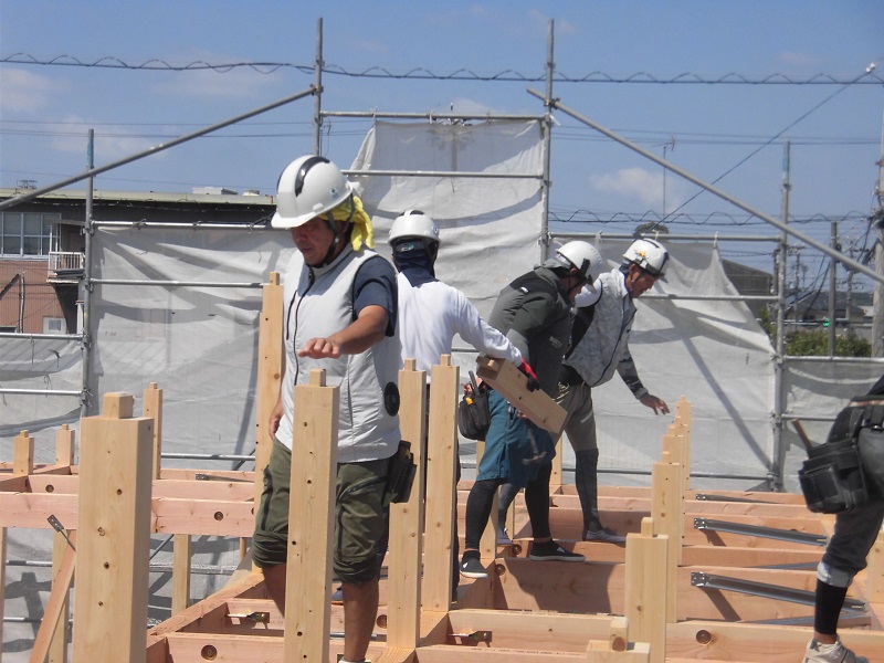 夢スマイル工房では、いつも建て方作業を2日間にわたって行っています。