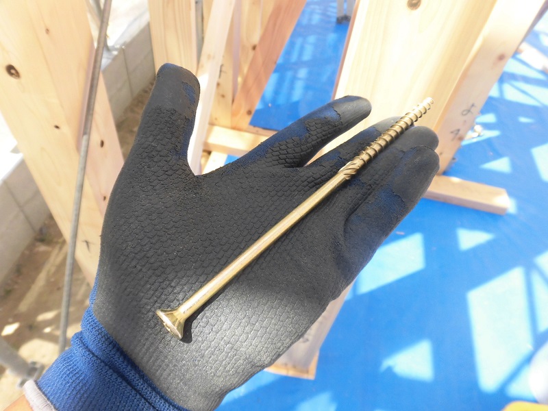 パネルの固定に使用するのは、普段はなかなかお目に掛かれない太くて長いこんなビスです。