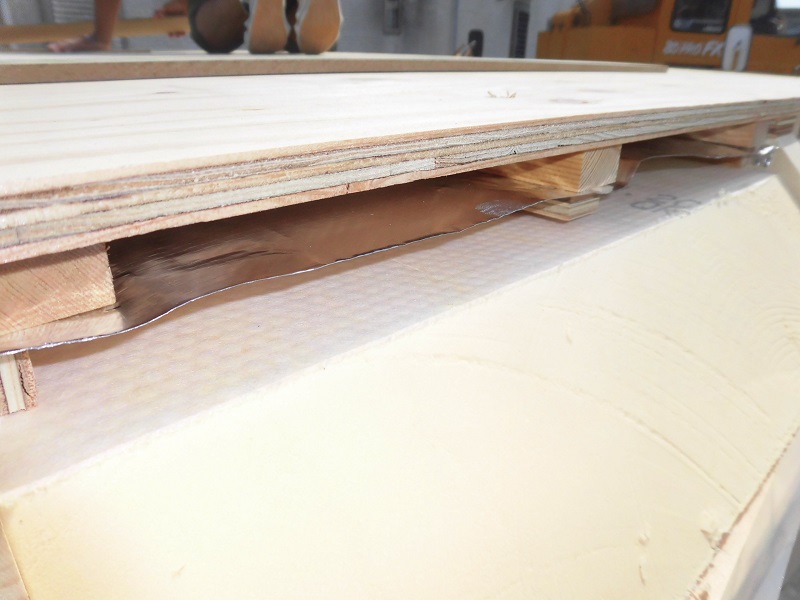このパネルは内装の天井材、屋根の断熱材と遮熱材が一体化しており、かなりの厚みがあります。