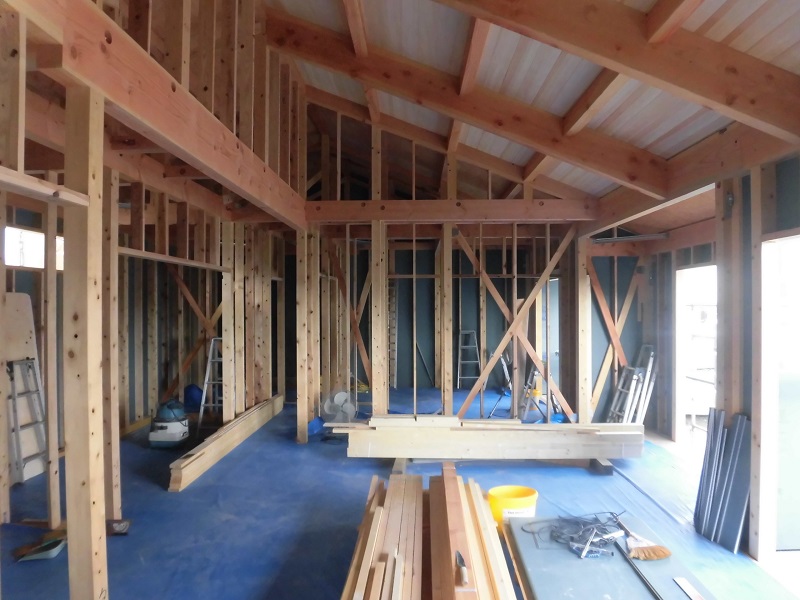 この日を過ぎれば残りの木工事の工程は基本的に大工さんが一人で行うことになるので、残りの時間は残りの時間で大工さんが大勢集まっているうちに進められるところまで作業を進めます。